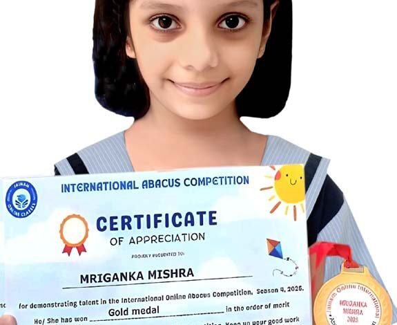 इण्टरनेशनल एबेकस प्रतियोगिता में सी.एम.एस. छात्रा को गोल्ड मेडल