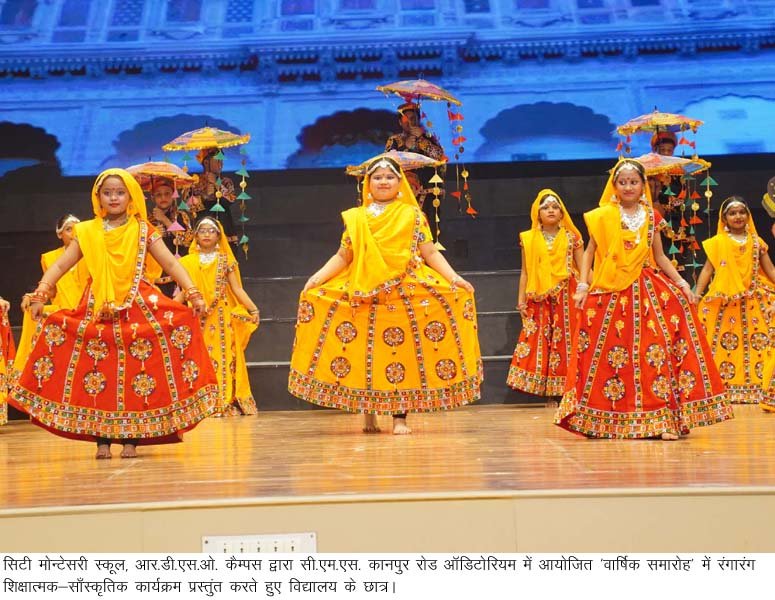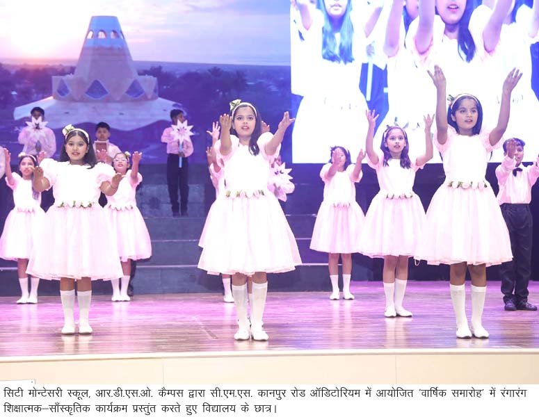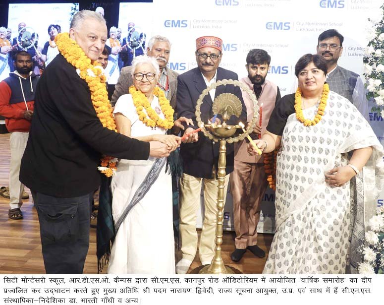 लखनऊ, 25 नवम्बर। सिटी मोन्टेसरी स्कूल, आर.डी.एस.ओ. कैम्पस द्वारा आयोजित ‘वार्षिक समारोह’ बड़े धूमधाम से उमंग व उल्लास से सराबोर वातावरण में सी.एम.एस. कानपुर रोड आॅडिटोरियम में सम्पन्न हुआ। मुख्य अतिथि, श्री पदम नारायण द्विवेदी, राज्य सूचना आयुक्त ने दीप प्रज्जवलित कर समारोह का विधिवत उद्घाटन किया। इस अवसर पर अपने सम्बोधन में मुख्य अतिथि श्री द्विवेदी ने अभिभावकों व शिक्षकों का आह्वान किया कि घर व विद्यालय में बच्चों को नैतिकता