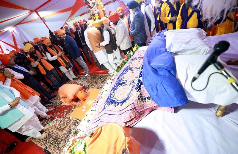 मुख्यमंत्री ने साहिब श्री गुरु ग्रन्थ साहिब जी के समक्ष मत्था टेका, सिख सन्तों का सम्मान किया तथा लंगर छका