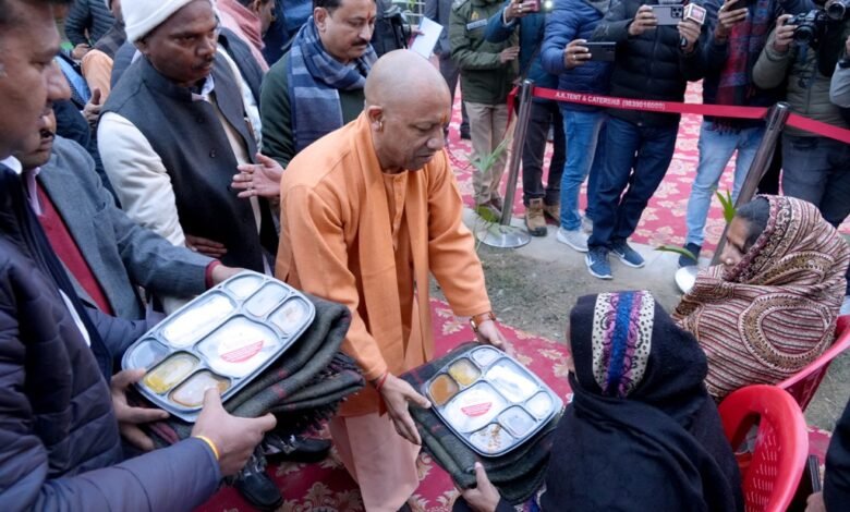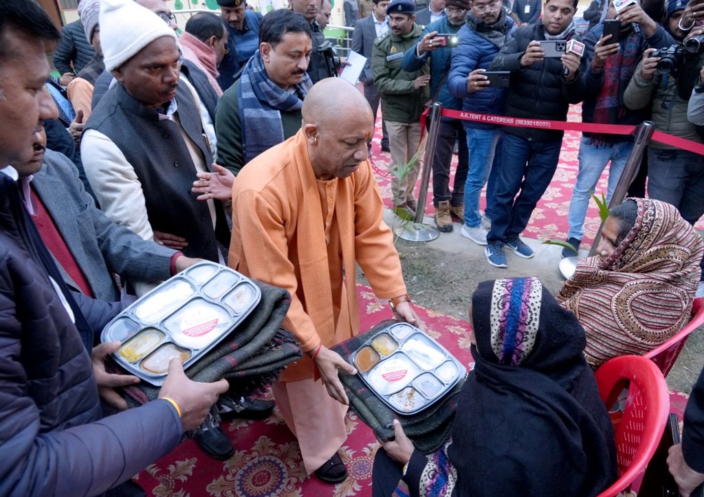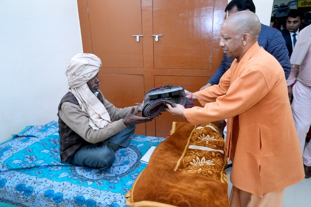 मुख्यमंत्री ने गोरखपुर में ट्रांसपोर्ट नगर और धर्मशाला स्थित रैन बसेरों का निरीक्षण तथा जरूरतमन्दों में कम्बल व भोजन का वितरण किया