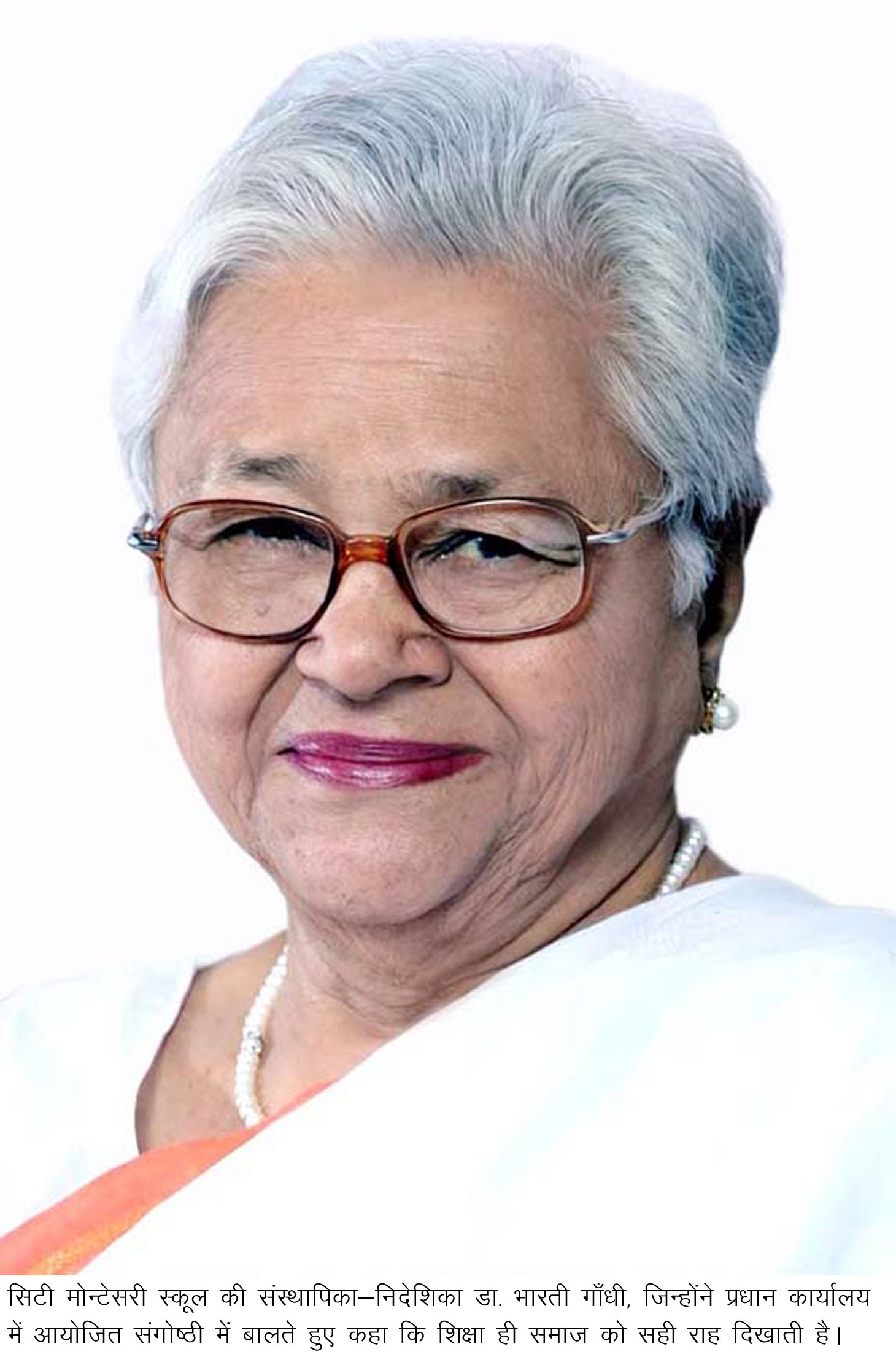 शिक्षा ही समाज को सही राह दिखाती है -- डा. भारती गाँधी, संस्थापिका-निदेशिका, सी.एम.एस.